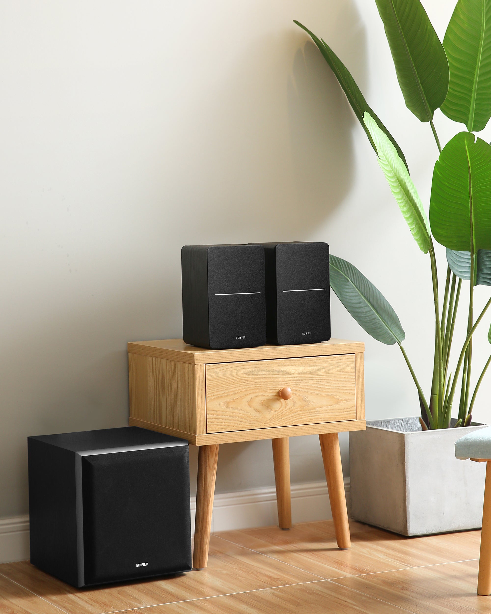 Place the speakers on a solid and stable plane, the height of which should be kept at a position parallel to the listener's ears, and the distance between the bass reflex hole and the wall should be at least 20-50cm. To get the most accurate sound and balance, the listener's best spot should be on the axis of the equilateral triangle formed by the left and right speakers. At the same time, you can adjust the angle of the speaker slightly to obtain a more ideal stereo effect