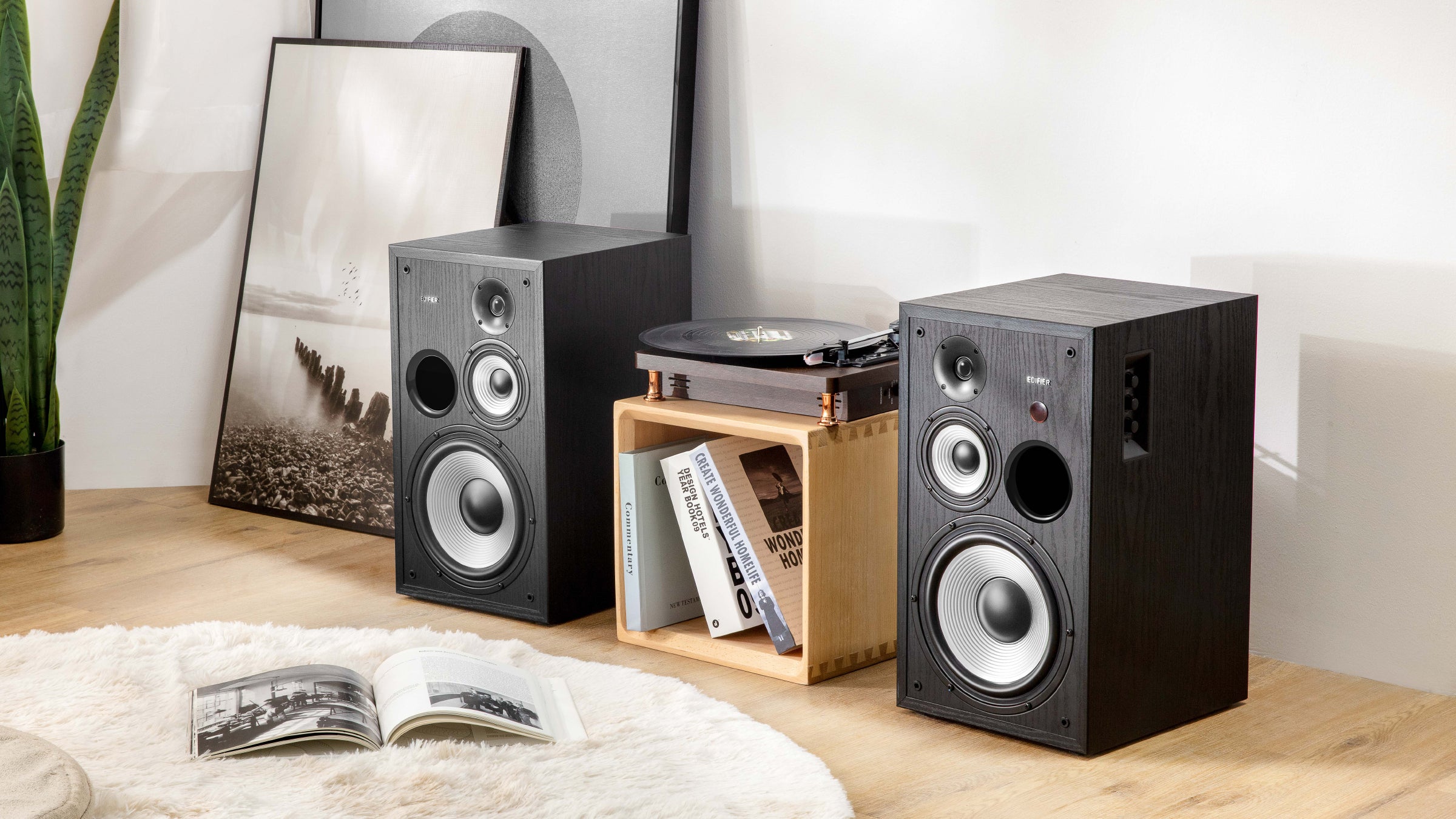 Place the speakers on a solid and stable plane, the height of which should be kept at a position parallel to the listener's ears, and the distance between the bass reflex hole and the wall should be at least 20-50cm. To get the most accurate sound and balance, the listener's best spot should be on the axis of the equilateral triangle formed by the left and right speakers. At the same time, you can adjust the angle of the speaker slightly to obtain a more ideal stereo effect